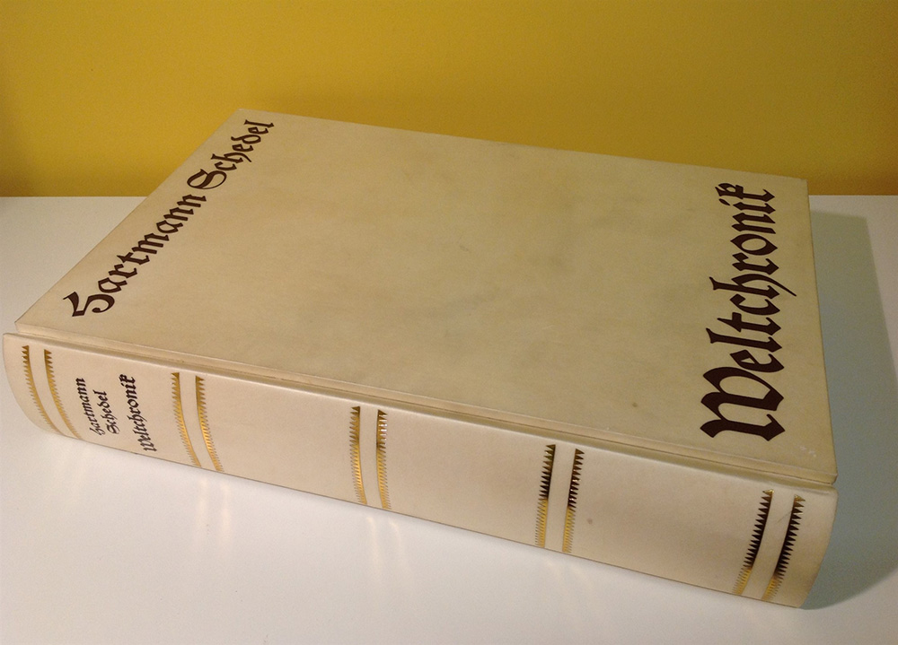 SCHEDEL, Hartmann. Weltchronik. Lipsia: Edition Libri Illustri, 1990. Esemplare n. 743/800. Facsimile del secolo XV corredato dal commentario di Konrad Kratzsch. Legatura in piena pelle bianca con decori in oro al dorso.