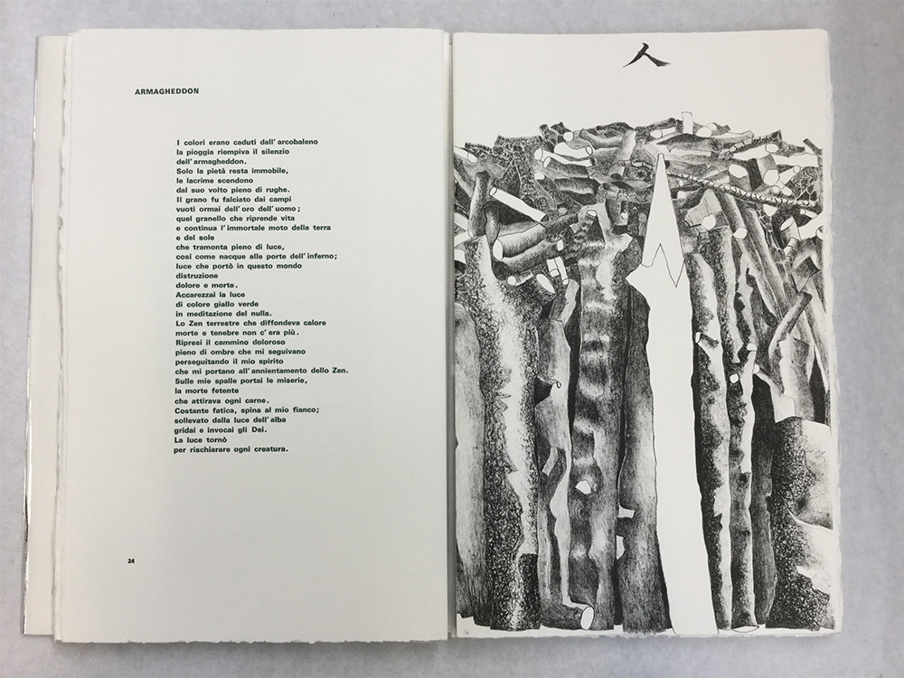 SAGGIO, Marisa - DANIEL, R.G. E poi. Woodmere - New York: Raphael Foode Editions, 1994. Esemplare 5/50 firmato, con cinque (su sei) litografie di Marisa Saggio e sedici poesie inedite di Daniel. 4to. Legatura editoriale cartonata, entro custodia originale.