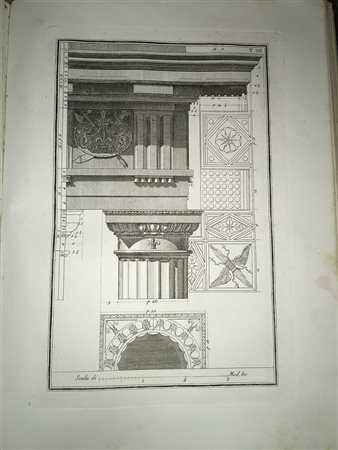 BAROZZI, M. Jacopo. Gli ordini di architettura civile. Milano: Pietro e Giuseppe Villardi, 1859. Volume in 4to sugli ordini di architettura civile dell'autore corredati dalle aggiunte degli architetti Gio. Battista Spampani e Carlo Antonini. Nell'antiporta incisione con busto dell'autore. All'interno del volume sono presenti 64 tavole raffiguranti figure geometriche e ornamenti architettonici (lievi fioriture). Legatura in mezza pelle (lievi difetti)