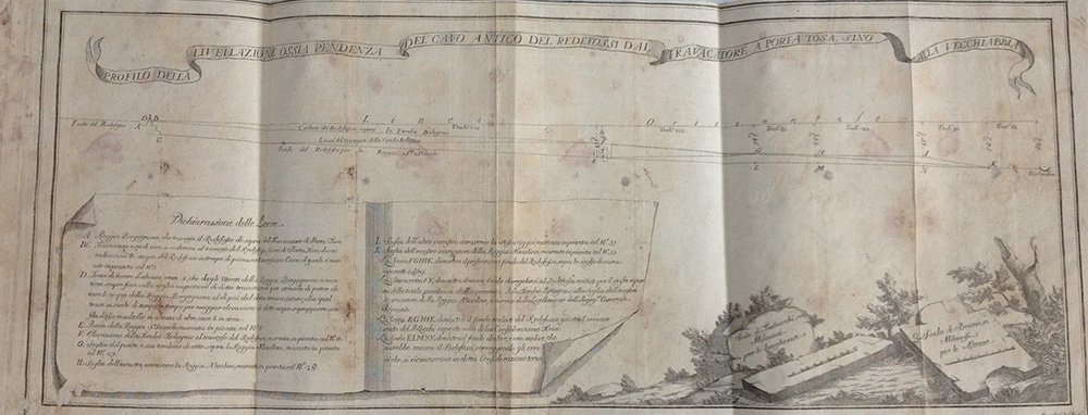 FERRARIO, Dionigi Maria. Esame dell'ingegnere collegiato di Milano, e regio camerale Dionigi Maria Ferrario sopra la dissertazione del regio matematico padre Lecchi. Milano: Giuseppe Richino Malatesta, 1762. Volume in 4to con marchio tipografico dell'editore e iniziali xilografiche. Grande tavola ripiegata incisa in rame (gore di umidità). Legatura in mezzo marocchino con decori in oro al dorso (rovinato).