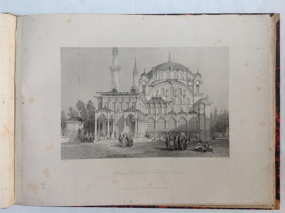 Album metà ottocento ca. Volume in 4to oblungo con incisioni per lo più raffiguranti vedute della Turchia e medio oriente.