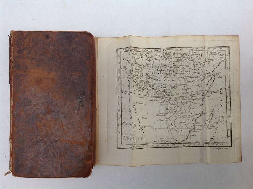 EXPILLY. Le geographe manuelle. Parigi: Bauche, 1762. Volume in 12mo con carte geografiche ripiegate in fine (lievi fioriture). Legatura in piena pelle antica e taglio di colore rosso (piatto anteriore staccato).