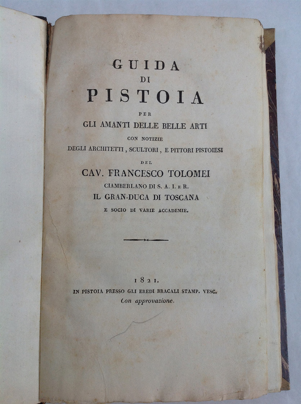 TOLOMEI, Francesco. Guida di Pistoia. Pistoia: Bracali, 1821. Volume in 8vo...