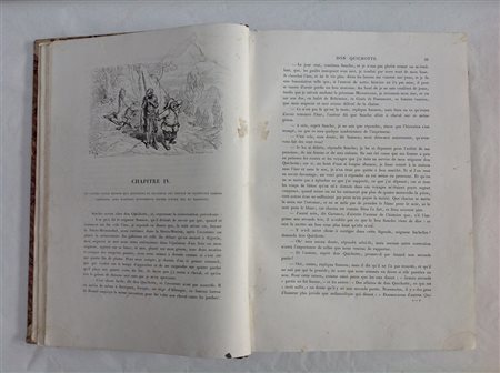 CERVANTES, Miguel. Don Quichotte. Parigi: Hachette, 1863. Volume in-folio. Tomo secondo con numerose illustrazioni di Doré (fioriture e gore di umidità). Legatura in mezza pelle con decori in oro al dorso (difetti).