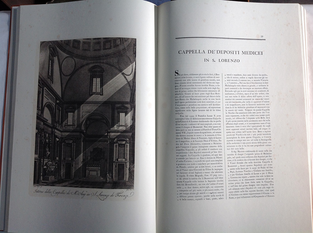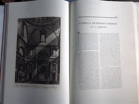 FONTANI, Francesco - TERRENI, Antonio. Viaggio pittorico della Toscana. Firenze: 1801 (ma ristampa a cura della Cassa di Risparmio di Firenze 1968). 3 volumi in-folio massimo con numerose immagini di chiese e monumenti della regione. Fedele ristampa anastatica di testo e di tavole dell'edizione originale (fioriture). Legatura in cartone con custodia.