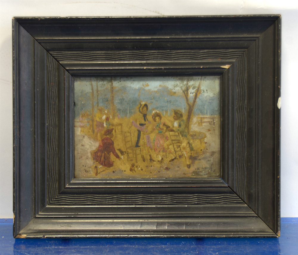 Scuola francese del secolo XIX "Scena galante" bozzetto ad olio su tavoletta...