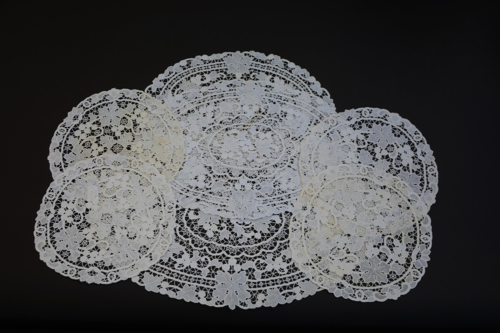 [Tappeti] Lotto composto da sei centrini tondi e quattro ovali in pizzo Venezia (d 24 cm; d 55 cm.) (lievi difetti)