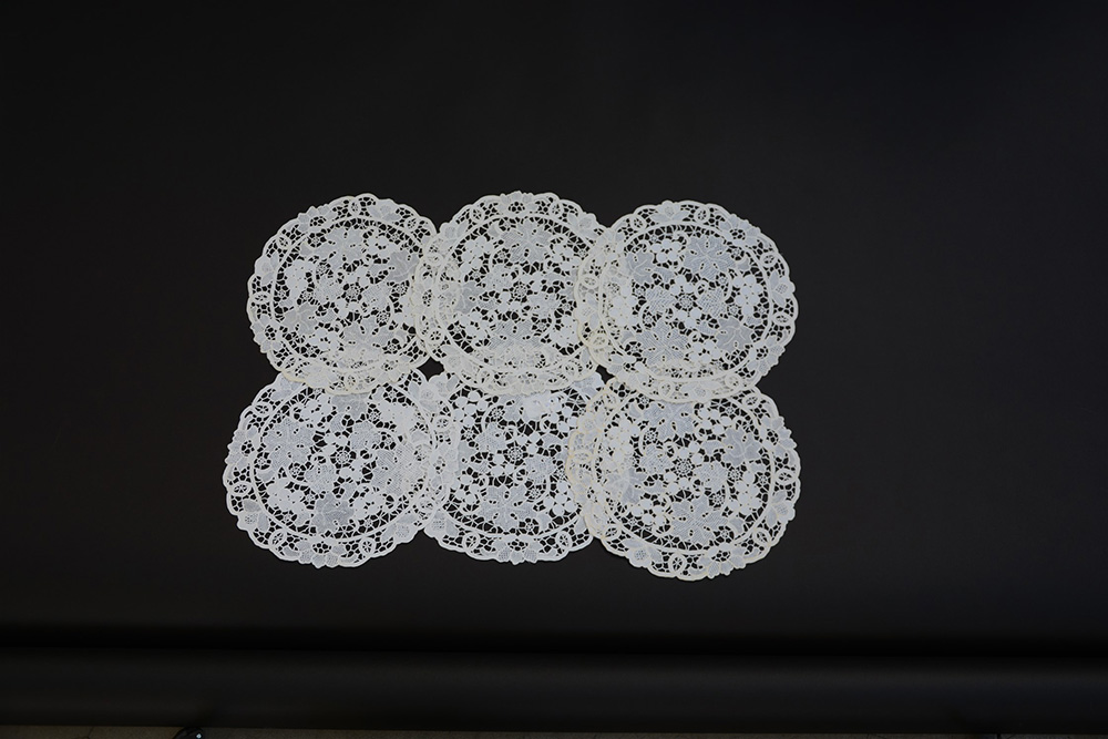 [Tappeti] Lotto composto da sei centrini medi in pizzo Venezia (d. 24 cm) (lievi difetti)