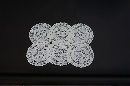 [Tappeti] Lotto composto da sei centrini medi in pizzo Venezia (d. 24 cm)...
