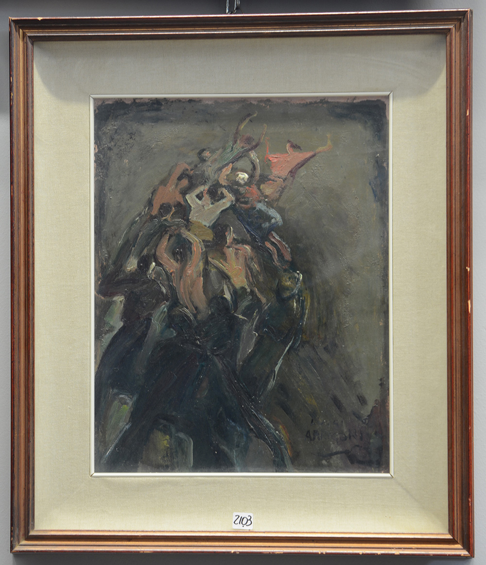 Arrigoni Luigi (Monza 1892 - 1969) "Figure" olio su cartoncino (cm 33x44) firmato in basso a destra, in cornice