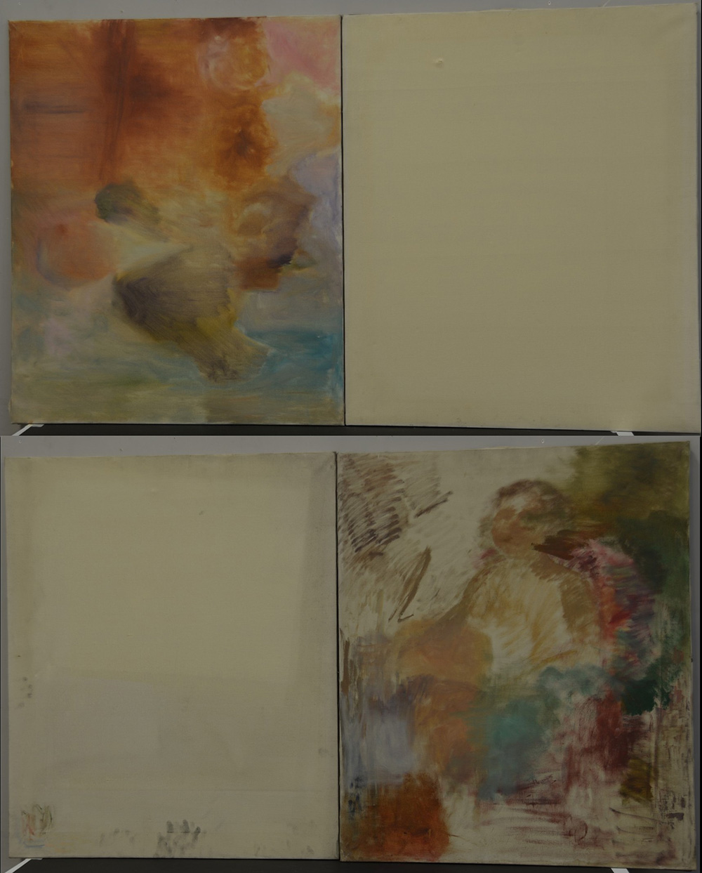 Lotto di quattro tele di cui tre dipinte (cm 95x79)