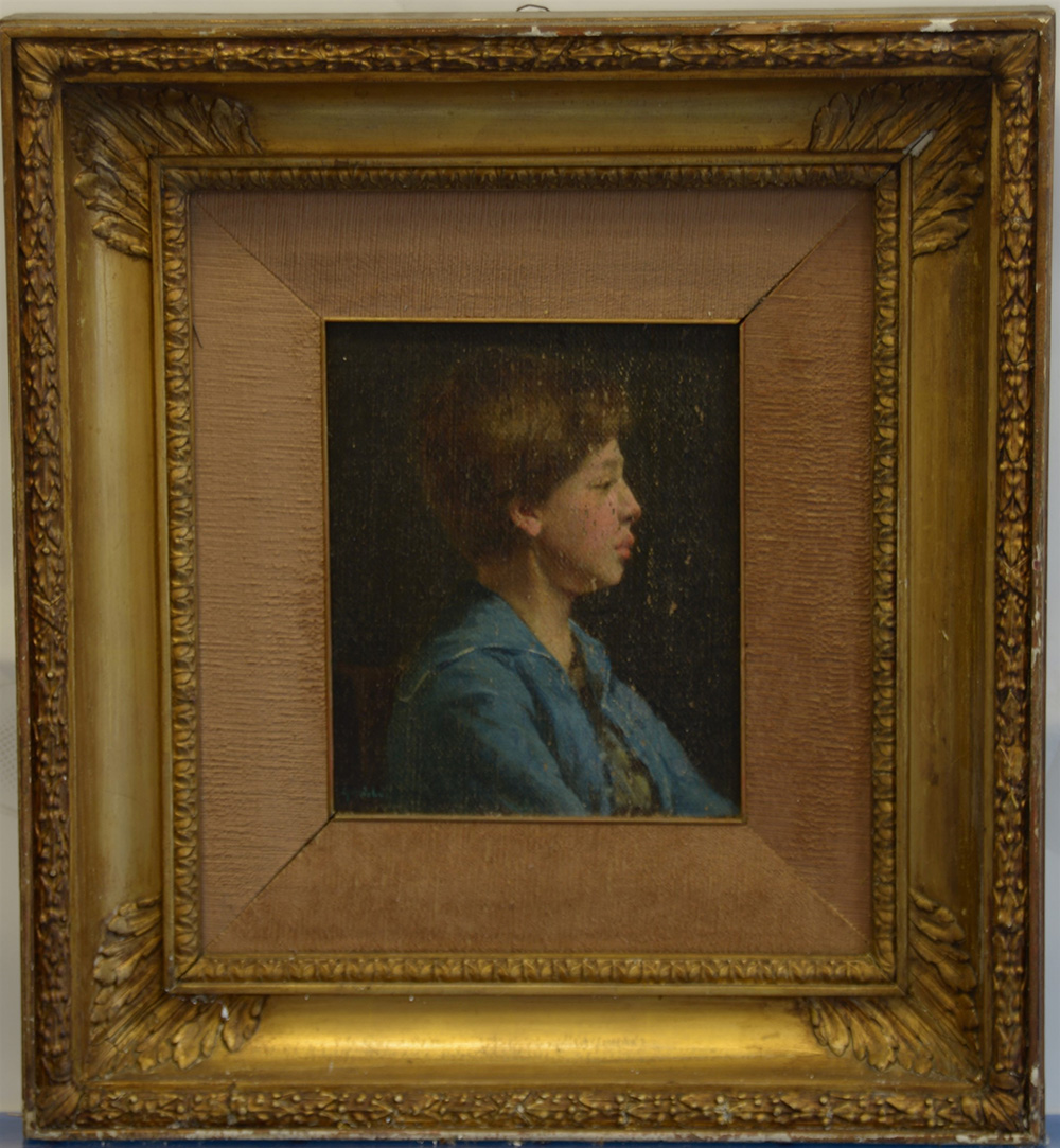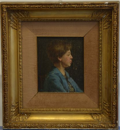 Ignoto secolo XIX "Ritratto di fanciullo" olio su compensato (cm 27x23) reca firma G. Micheli in basso a sinistra, in cornice (difetti)