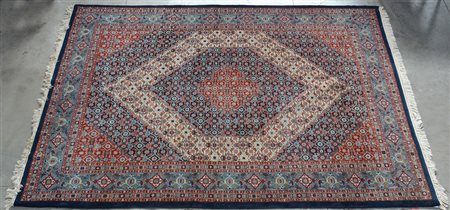[Tappeti] Tappeto Tabriz, Persia, secolo XX. Disegno con medaglioni concentrici nei toni del blu, rosso e bianco decorati con motivo Herati (cm 346x245) (lievi difetti)