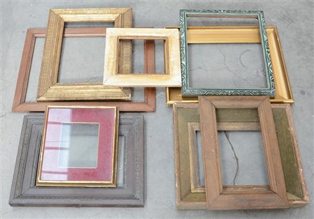 Lotto composto da nove cornicette di misure e materiali diversi (difetti)