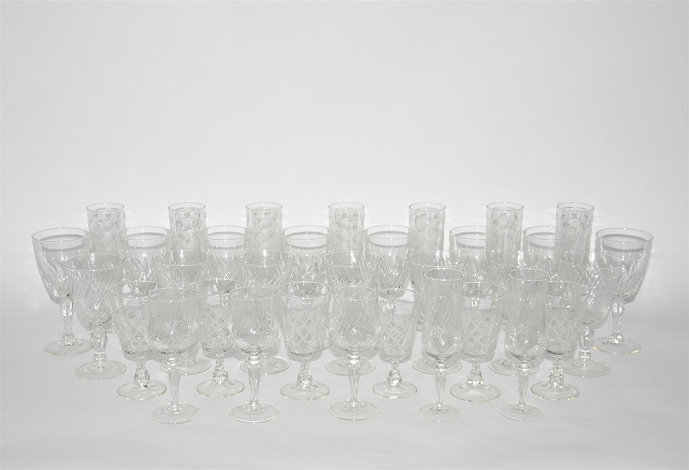 Lotto composto da circa cinquanta calici in vetro incolore con decori diversi...