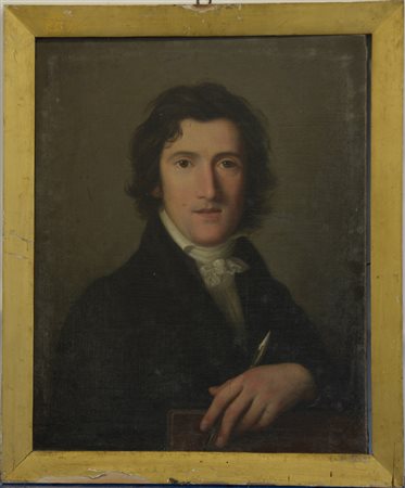 Scuola del secolo XIX "Ritratto di pittore" olio su tela (cm 62x48) in cornice (difetti)