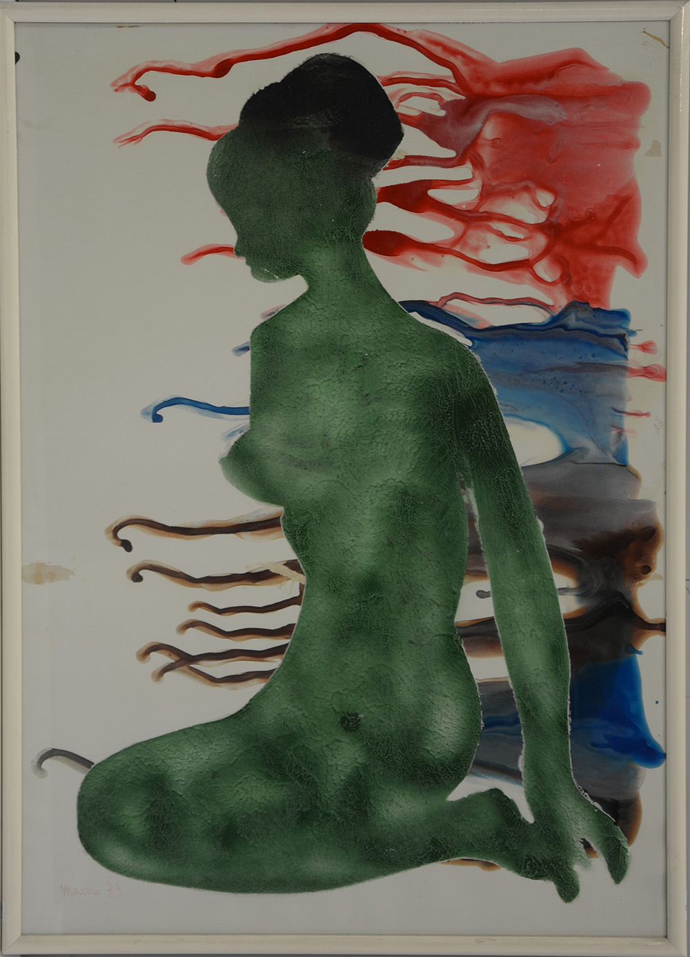 Maxim "Figura inginocchiata" tecnica mista (cm 70x50) firmata e datata 1973 in basso a sinistra, in corcnice