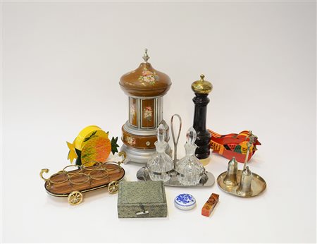 Lotto composto da un portasigarette con carillon, una pepiera ed altri sette...