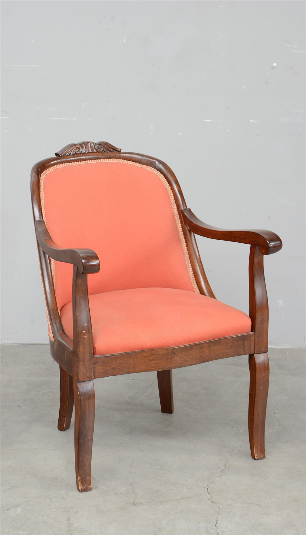 Poltroncina con schienale sagomato e cimasa intagliata. Braccioli, montanti e...