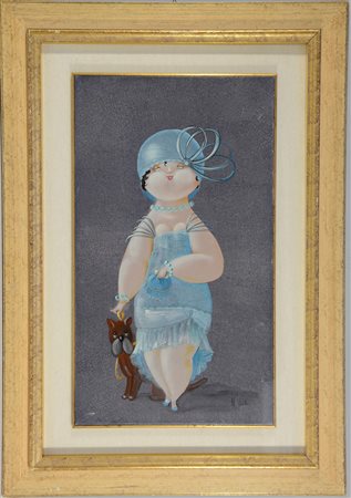 Vietti N. "Figura femminile con cagnolino" tecnica mista (cm 70x40) firmato in basso a destra. Timbro e autentica al retro, in cornice