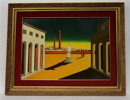 Falso d'autore. Da Giorgio De Chirico "Piazza d'Italia" olio su tela (cm 50x70) In cornice