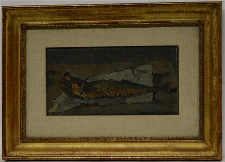 Gianni Vagnetti (Firenze 1897 - 1956) "Aringa" (1942) olio su tela applicata a cartone (cm 17x32,5) Al retro: cartiglio "Mostra Retrospettiva di Gianni Vagnetti" Milano, Roma, Firenze 1958, n. 46; timbri della Galleria d'Arte Sant'Ambrogio, Milano; timbro Società per le Belle Arti ed Esposizione Permenete, Milano Bibliografia: Luigi Cavallo "Gianni Vagnetti" 1975, TAV.CXLVII fig. 42. In cornice