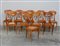 Gruppo di dieci sedie di gusto Biedermeier, schienali a giorno e seduta...