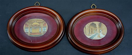 Ignoto, coppia di miniature raffiguranti architetture orientali (cm 4,5x6),...