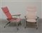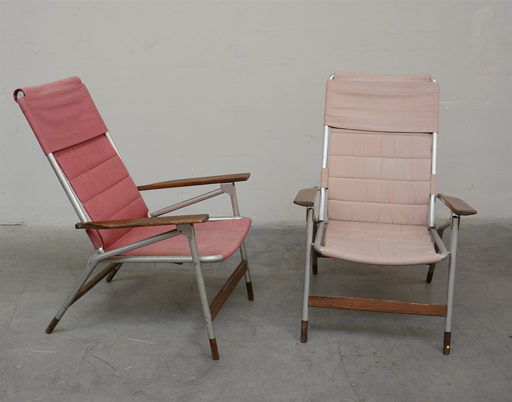 Coppia di sedie a sdraio in legno e alluminio rivestite in cotone rosso (difetti)