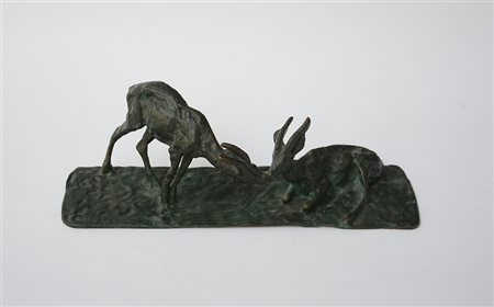 Firma indecifrata "Antilopi" gruppo in bronzo brunito (cm 35x14x10) Firmato alla base