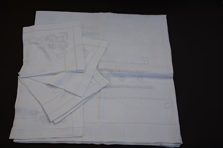Tovaglia ricamata in fiandra corredata di dodici tovaglioli (215x310 cm)...