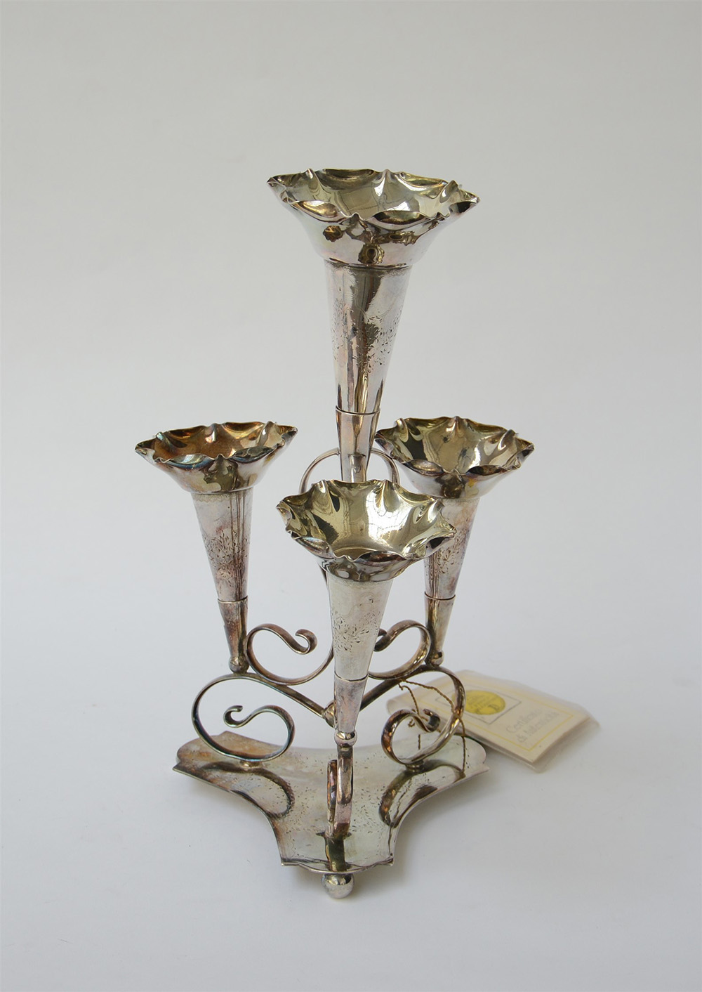 Centrotavola in sheffield composto da quattro vasetti montanti insieme su...