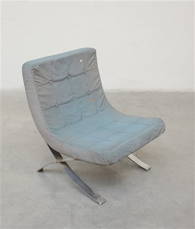 Poltrona imbottita cn base in acciaio, anni 70/80 (difetti)