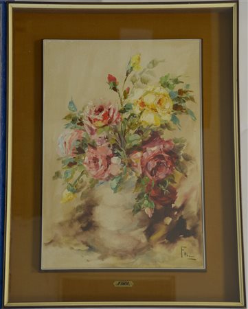 Ignoto "Vaso con fiori" olio su tela (cm 63x43) reca firma Fabi in basso a destra, in cornice