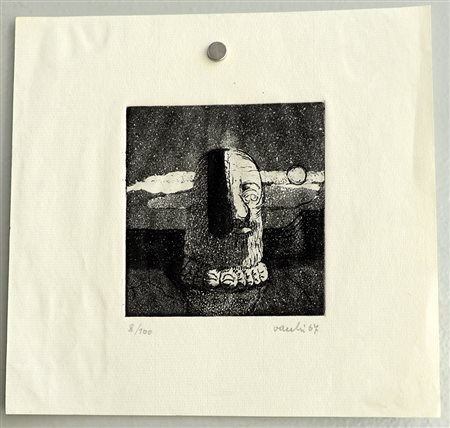 Sergio Vacchi (Castenaso Di Bologna 1925) "Senza titolo" 1967, acquaforte (lastra cm 10x9 foglio cm 19x19,7) numerata 8/100, firmata e datata in basso in lapis