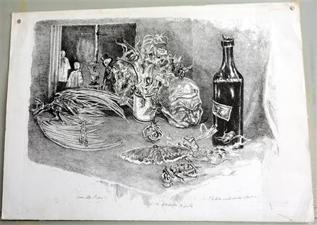 Walter Piacesi (Ascoli Piceno 1929) "Natura morta" litografia (cm 50x70) Firmata, titolata e inscritta in basso in lapis (lievi difetti)