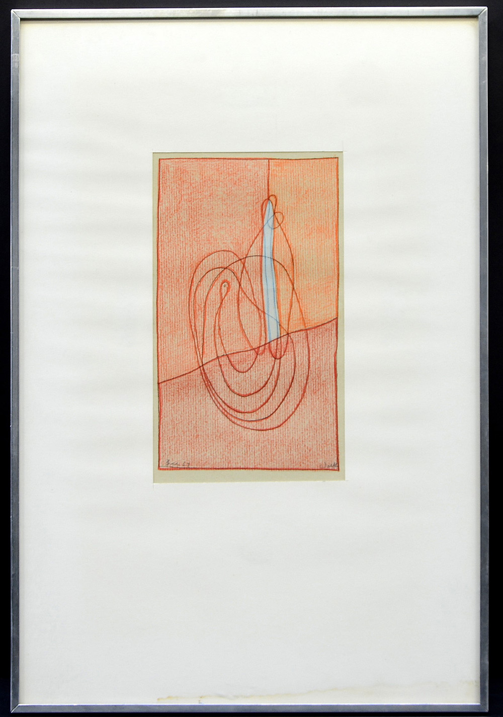 Remo Wolf (1912 - 2009) "Senza titolo" 1969, tecnica mista su cartoncino (il disegno cm 17,4x10,4) datato e firmato in basso a matita. In cornice.