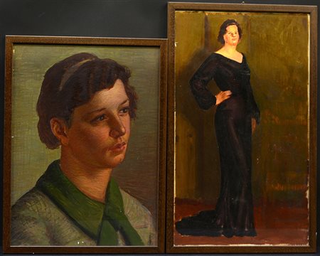 Pierino Testa (Albino 1912 - 1999) due ritratti femminili, tecniche miste su cartoncino, misure diverse. In cornici (lievi difetti)