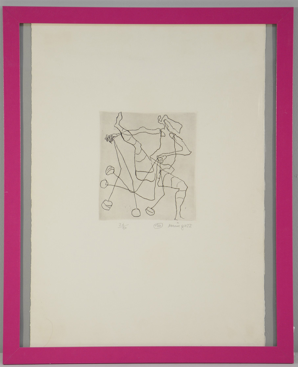 Luciano Minguzzi (Bologna 1911 - Milano 2004) "Giocoliere" acquaforte e puntasecca (battuta cm 16,5x15; foglio 45,5x35,5) numerata 24/50, monogrammata e firmata in basso a matita, in cornice.