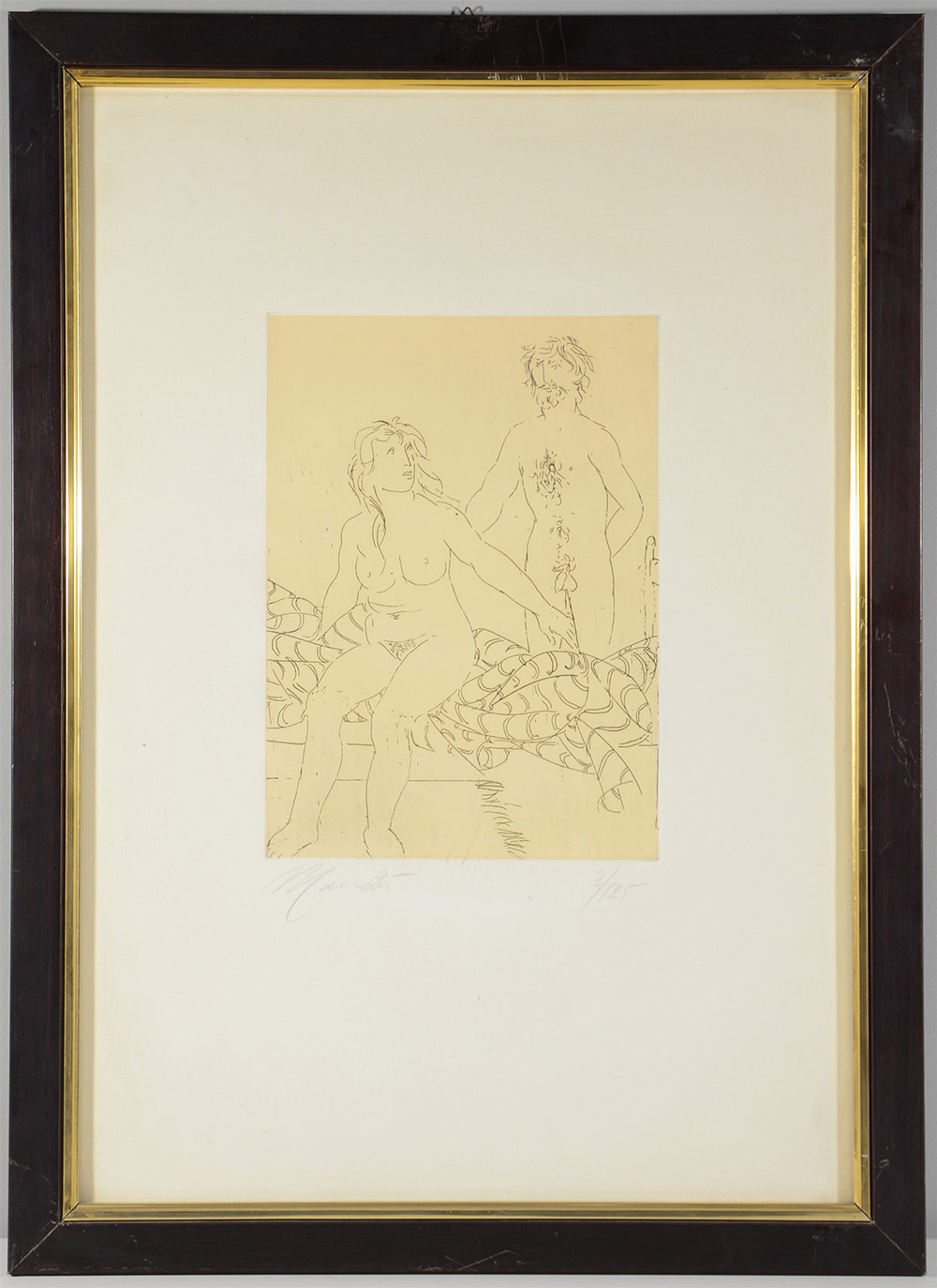 Giacomo Manzù (Bergamo 1908 - Ardea 1991) "Senza titolo" acquaforte (lastra cm 33x24; foglio cm 68x48) Firmato e numerato 3/125 in basso a matita.