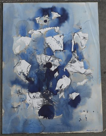 Felice Canonico (Messina 1922 - Milano 1996) "Senza titolo" 1959 tecnica mista su carta (cm 33x24,2) firmato e datato in basso a destra