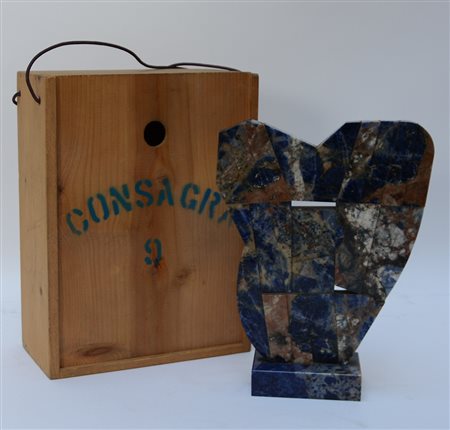 Pietro Consagra (Mazzara Del Vallo 1920 - Milano 2005) "Sodalite" 1980 scultura in sodalite del Sud Africa in scatola di legno, cm 25,3x19x6,5 (inclusa la base) Firmata e numerata es. 9/50 (lievi difetti)