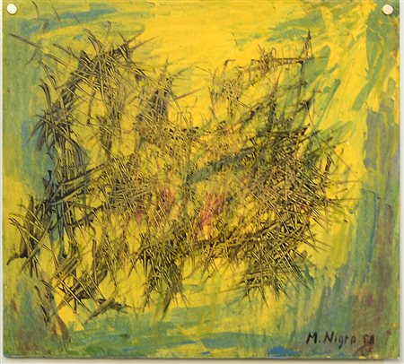 Mario Nigro (Pistoia 1917 - Livorno 1992) "Senza titolo" 1958, tecnica mista su carta (cm 35x39)firmata e datata in basso a destra.