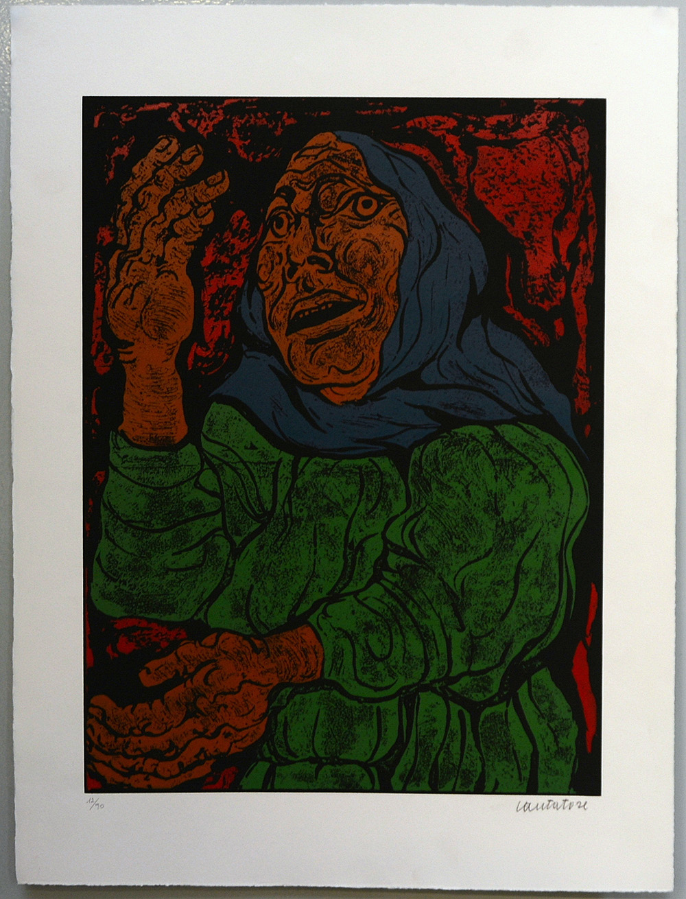 Domenico Cantatore (Ruvo Di Puglia 1906 - Parigi 1998) "Senza titolo" serigrafia policroma (foglio cm 60x45) numerata 12/90 e firmata in basso a matita.