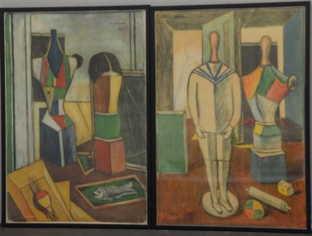 Coppia di riproduzioni di opere di Carlo carrà (cm 68x47) in cornici