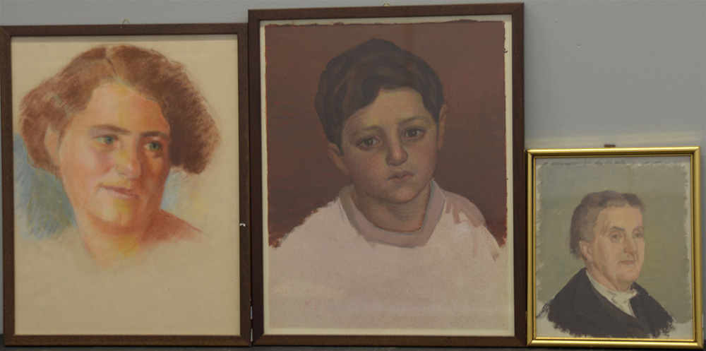 Pierino Testa (Albino 1912 - 1999) tre ritratti, tecniche miste su cartoncino, misure diverse. Uno dei quali con tracce di firma. In cornici