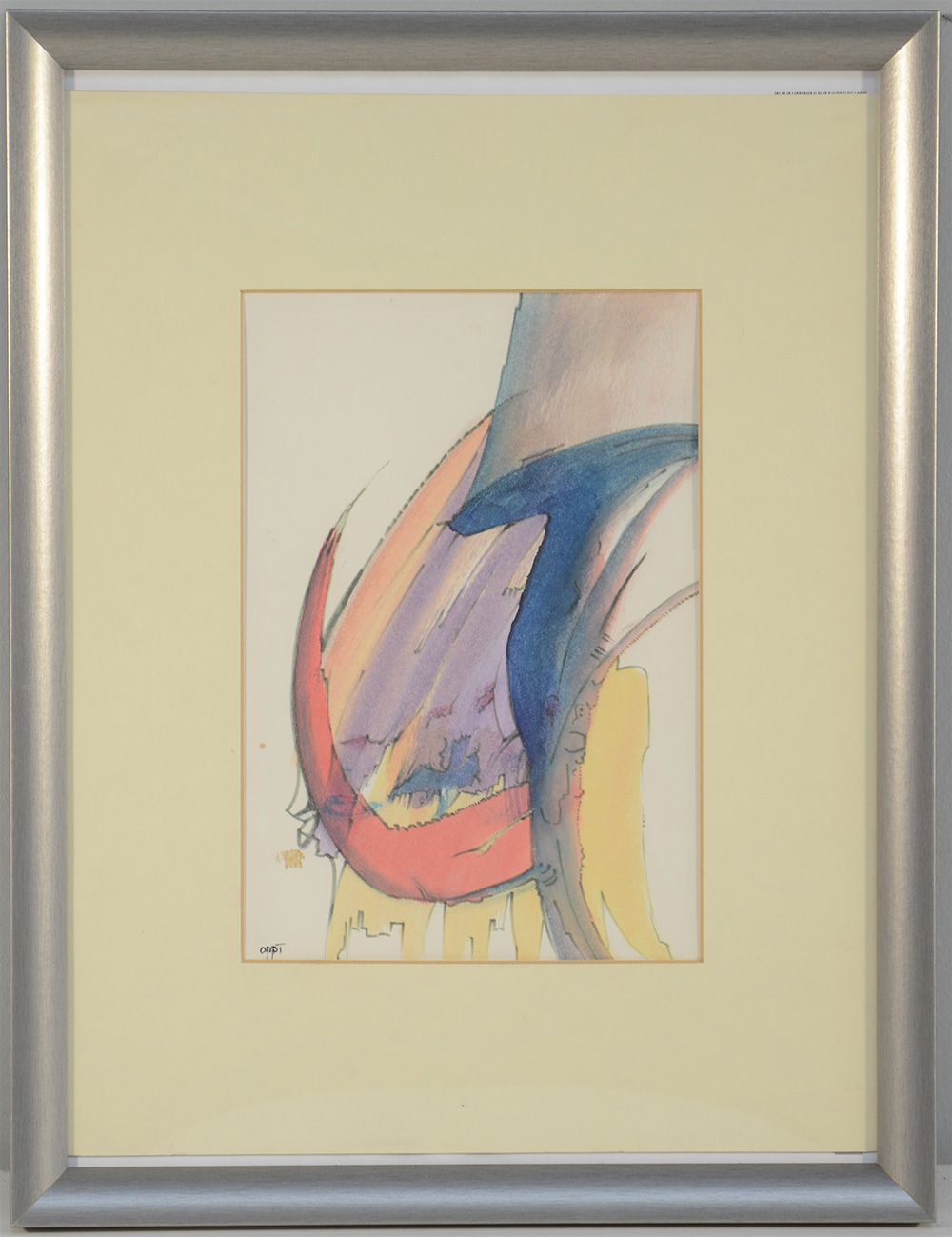Daniele Oppi (Milano 1932 - 2006) "Senza titolo" acquerello su carta (cm 24,2x16,8) firmato in basso a sinistra. In cornice (lievi difetti)