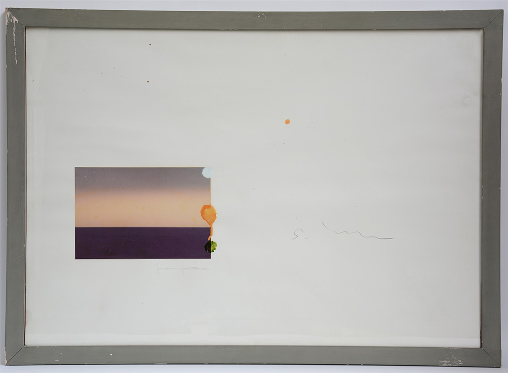 Mario Schifano (Homs 1934 - Roma 1998) "Senza titolo" smalto, collage, fotografia di Franco Fontana su carta (cm 70x100). Firmata "Schifano" e firma di Franco Fontana sotto la fotografia, in cornice. Opera accompagnata da certificato di autenticità dell'Archivio Mario Schifano rilasciato il 25/09/17 con archiviazione n. 03536170923.