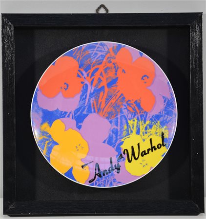 Andy Warhol (Pittsburgh 1928 - New York 1987) "Flowers" piatto in ceramica (diam. cm 24), es.218/500 (timbro al retro) in cornice Edizioni Rosenthal Studio Line su autorizzazione della Andy Warhol Foundation, New York Opera accompagnata da certificato di autenticità rilasciato da Rosenthal Studio line
