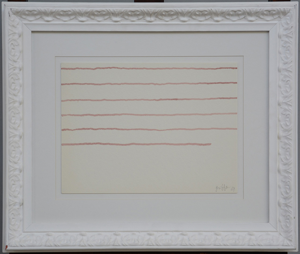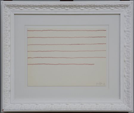 Giorgio Griffa (Torino 1936) "Senza titolo" 1969 tecnica mista su cartoncino (cm 23x30,5) Firmato e datato 69 in basso a destra. In cornice Opera accompagnata da certificato di autenticità su fotografia rilasciato dall'artista